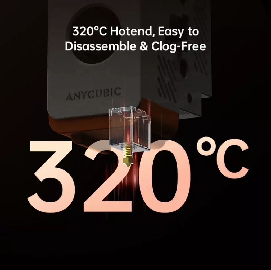 Tamamen metal hotend, 320°C’ye kadar, baskı tablası ise 120°C’ye kadar ısınabilir.