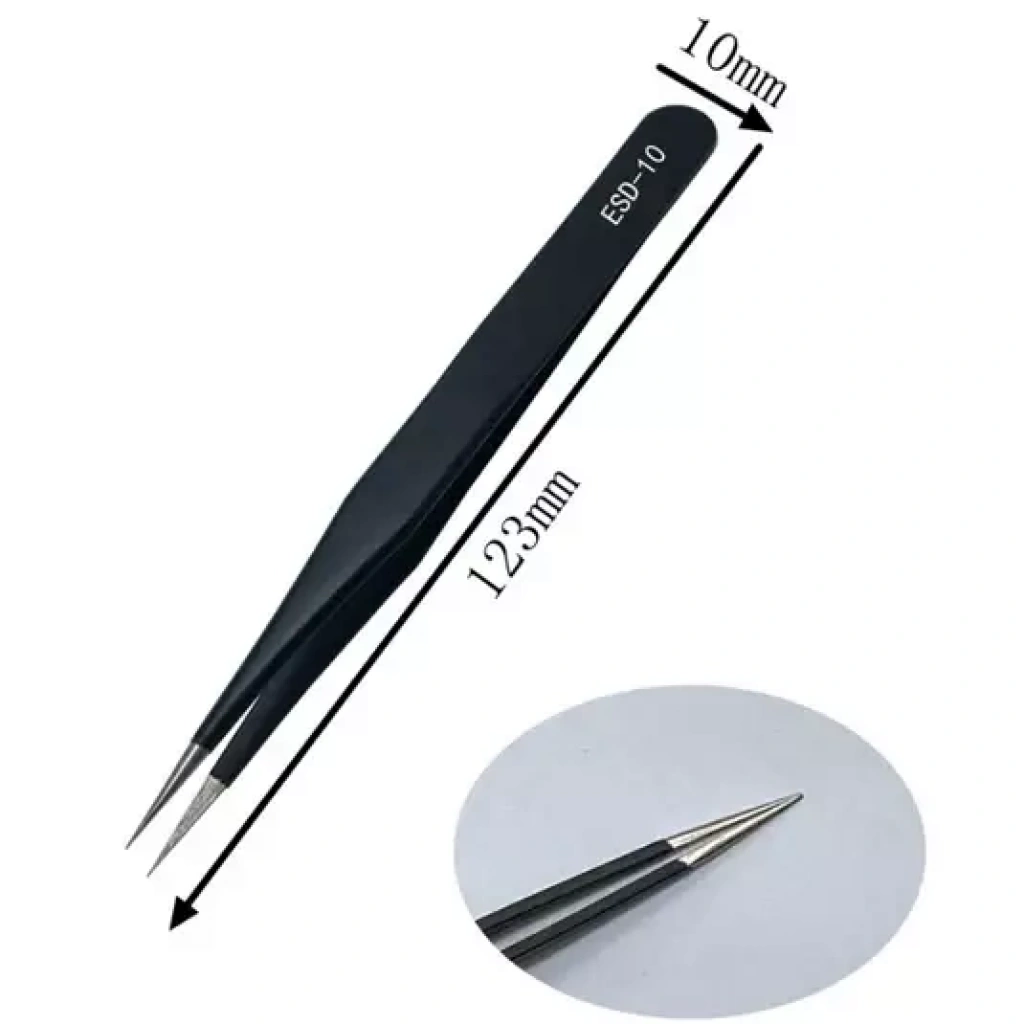 ESD-10 anti-statik cımbız, hassas elektronik montajlar, SMD bileşen yerleştirme, lehimleme işlemleri ve laboratuvar kullanımları için uygundur. Anti-statik yapısı sayesinde hassas elektronik bileşenleri güvenle tutmanızı sağlar.