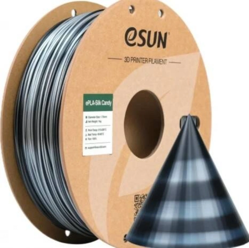 • 1 Adet Esun ePLA-Silk Candy Filament Gümüş - Siyah 1.75 mm 1kg (Vakumlu Poşet)