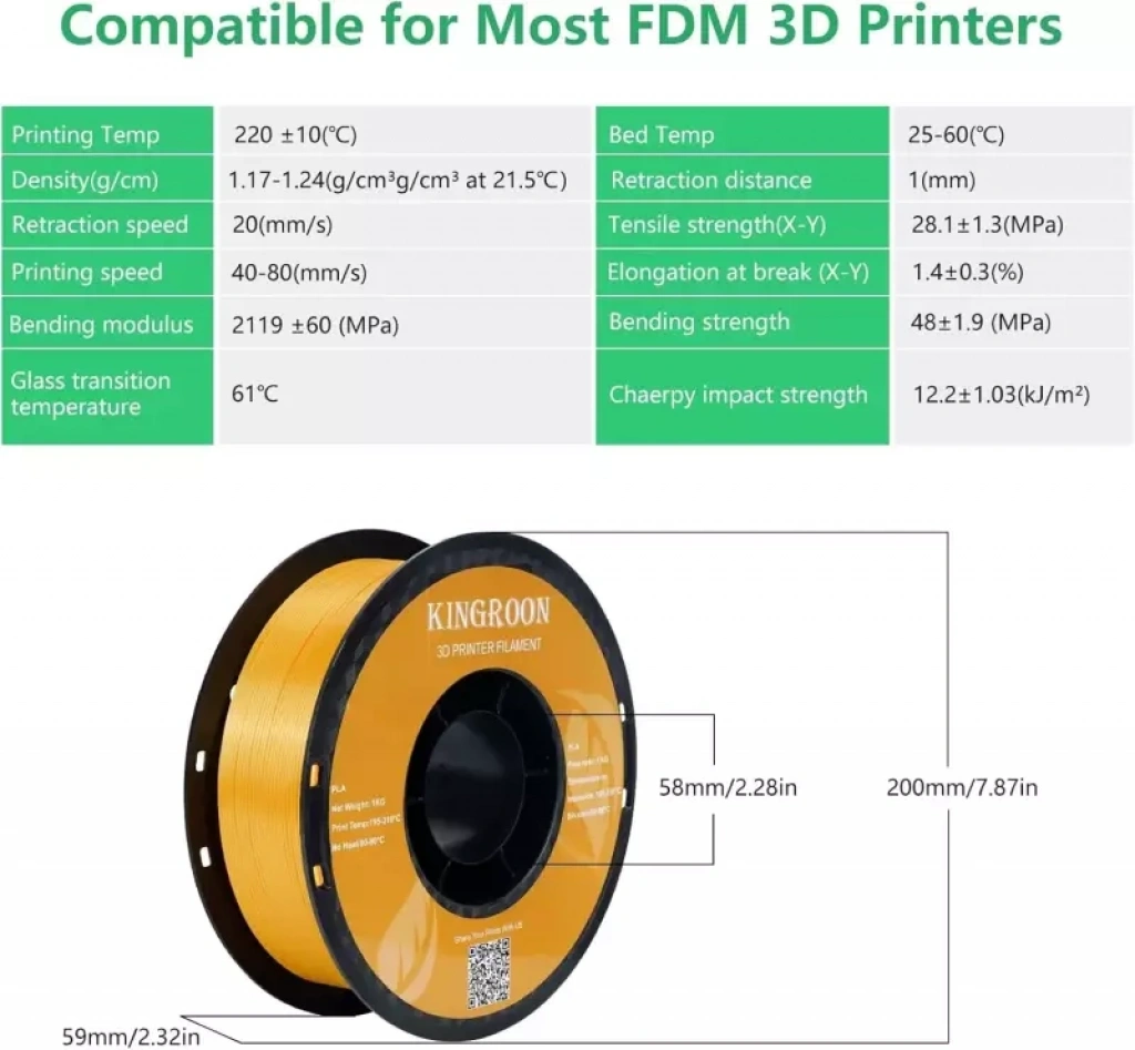 Kingroon’un yeni üretim serisine ait orijinal PLA Silk filamentidir.