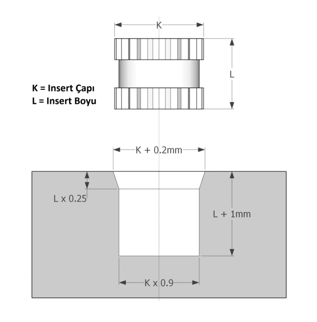 • Kullanım: Plastik, ahşap ve yumuşak malzemelerde vida bağlantısı sağlamlaştırma